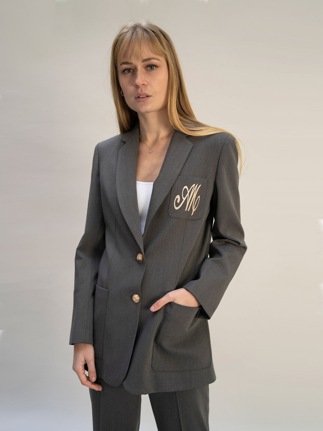 BLAZER SLOAN 2023 DROIT POCHES PLAQUÉES Gris