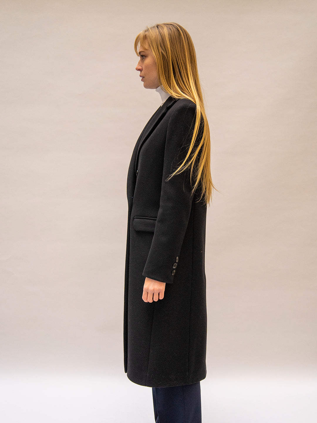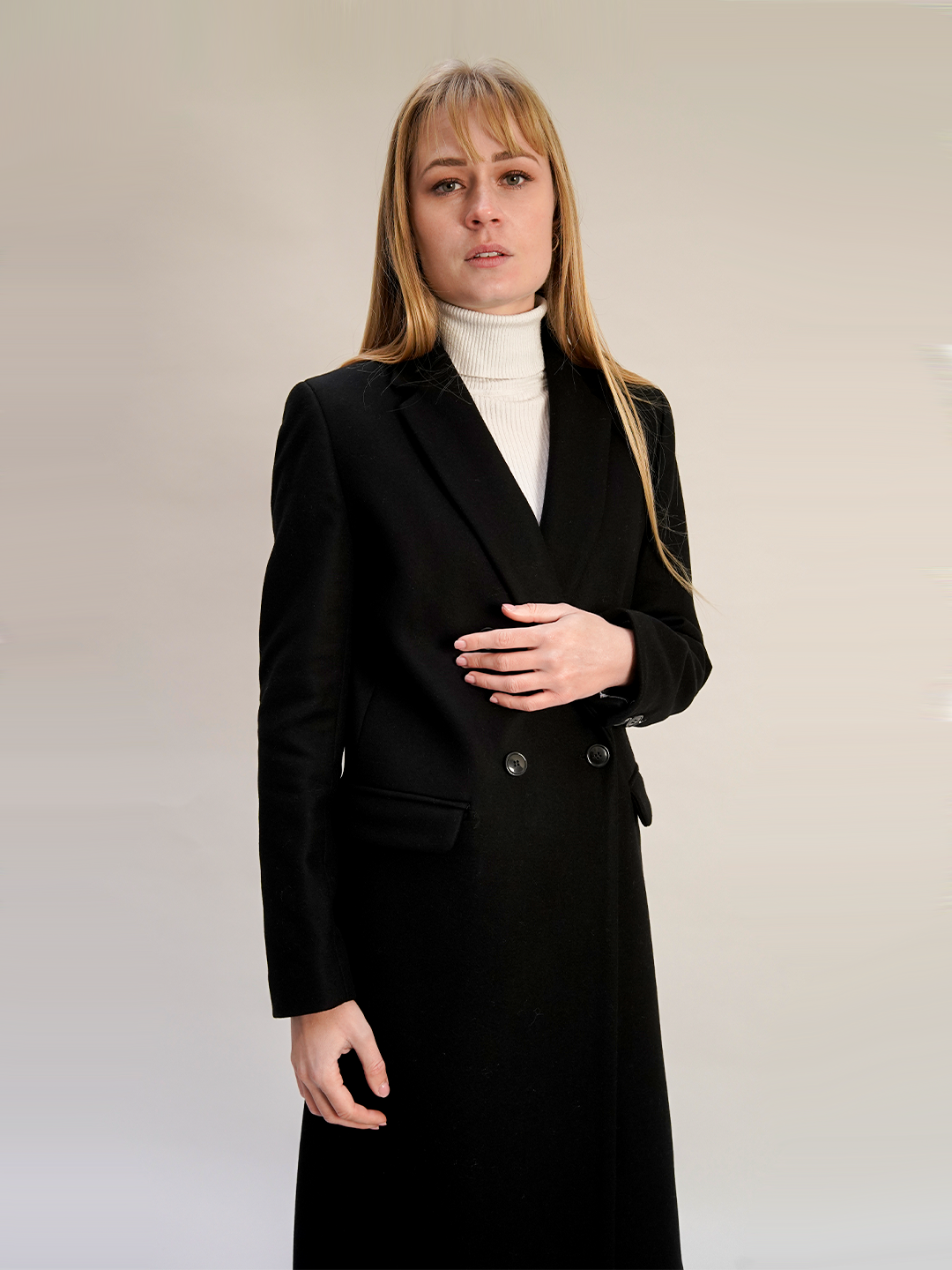 Manteau Coisé Charlotte-Cache de couleur Noir un classique revisité, ce manteau croisé incarne l'élégance contemporaine. Arborant un col tailleur et une fermeture croisée à double boutonnage, il offre un style sophistiqué et intemporel.