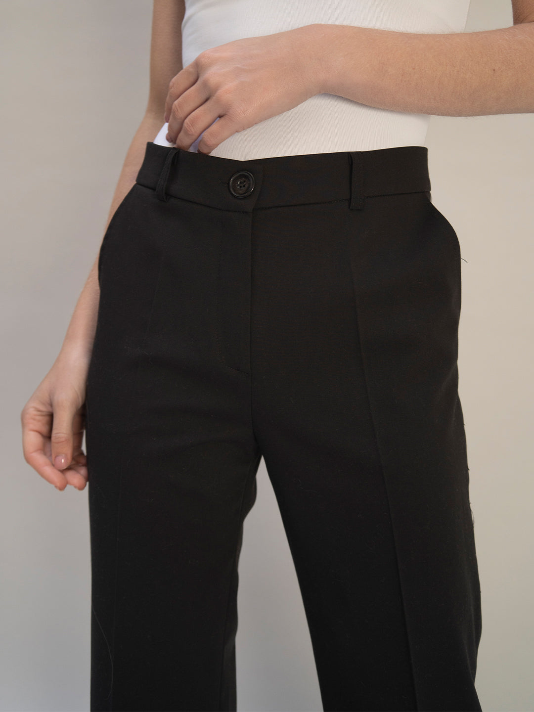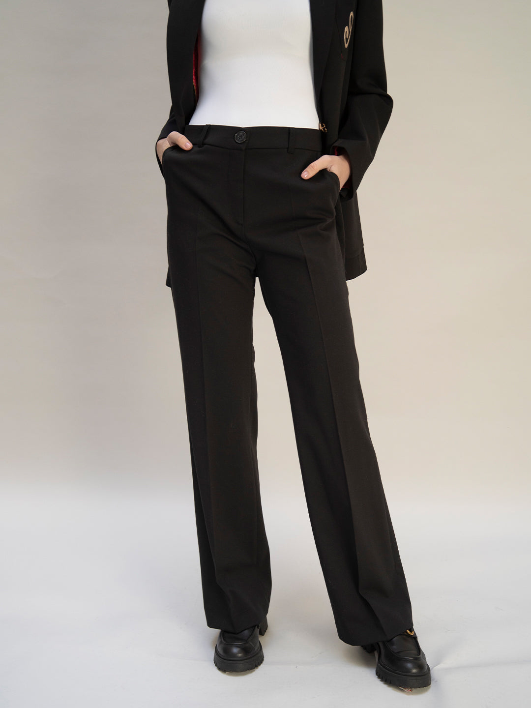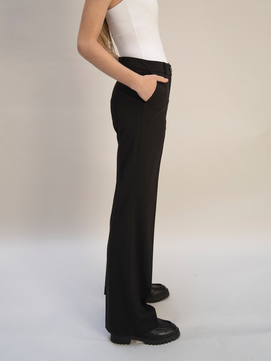 Le pantalon de tailleur droit noir offre une allure chic et élégante, avec une largeur en bas de 28cm confère une coupe droite et moderne à la fois.