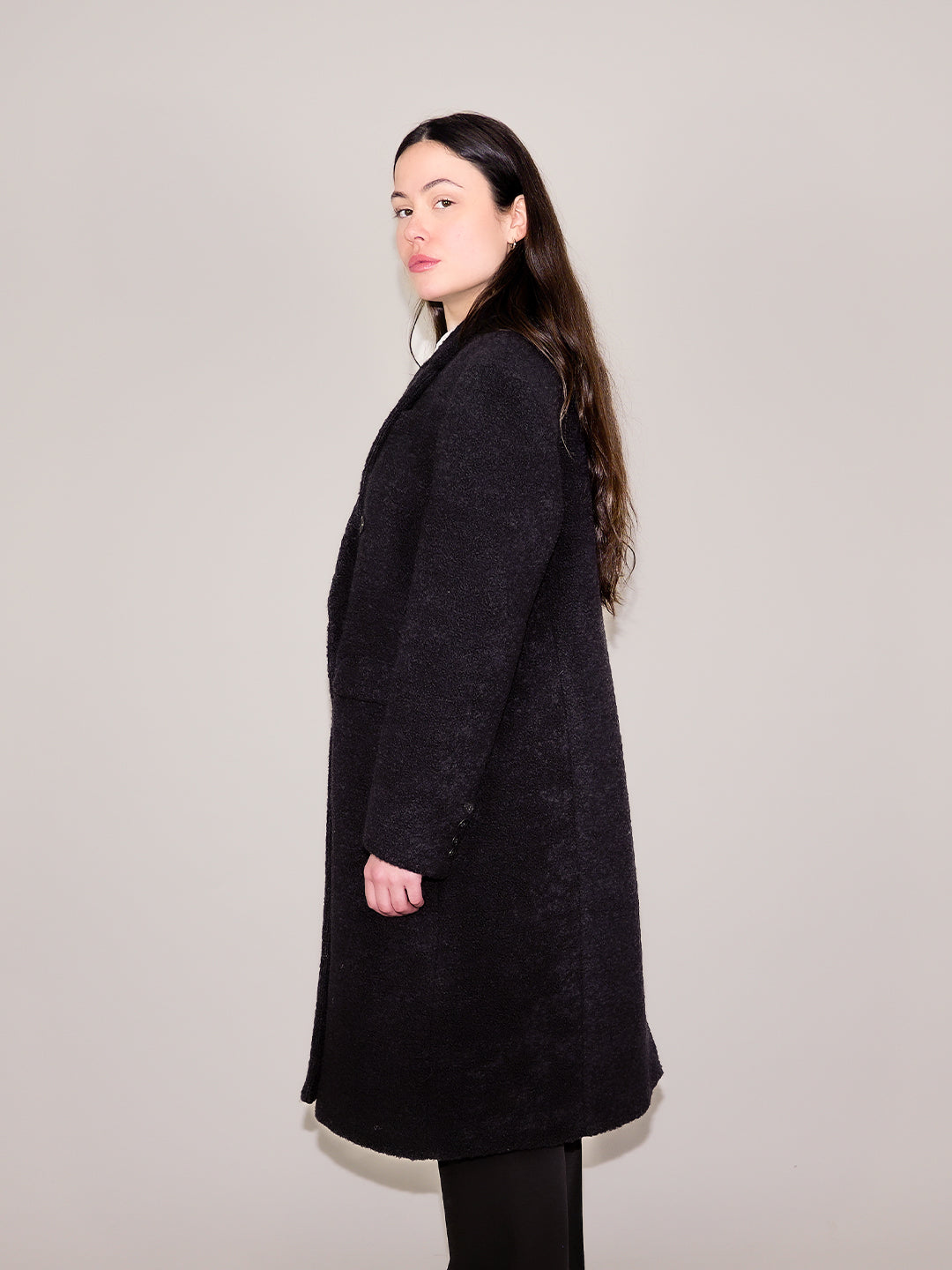 MANTEAU SANDY EN BOUCLETTE DE LAINE NOIR